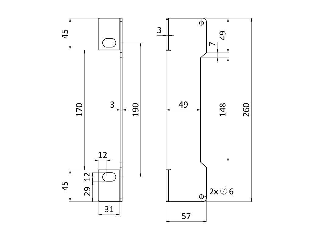 Set - dorazová kazeta pravá/levá EZK310 (260x30x30 mm) + elektrický zámek EZ332 s lištou