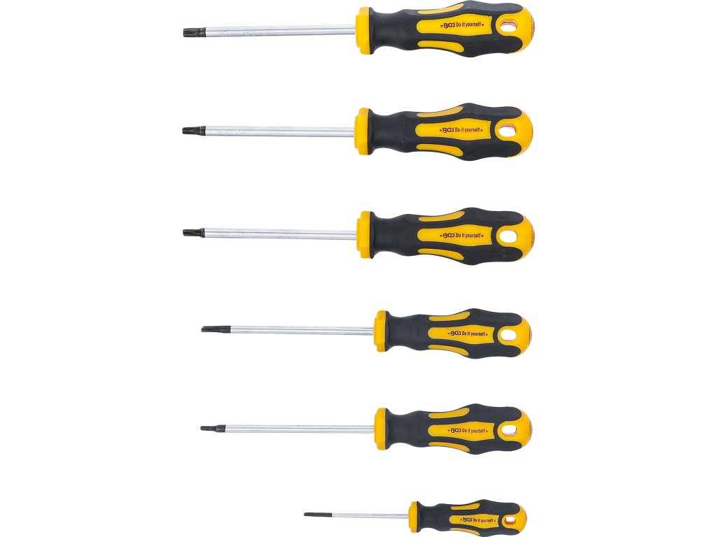 Tato sada šroubováků torx obsahuje 6 nejběžnějších velikostí pro široké spektrum použití. Šroubováky jsou vyrobeny z vysoce kvalitní chrom-vanadiové oceli a mají ergonomické rukojeti pro pohodlné držení a maximální sílu.Doplňkové parametry