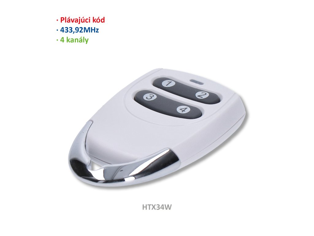 Vysílač 4kanálový, 433MHz, plovoucí kód, bílý