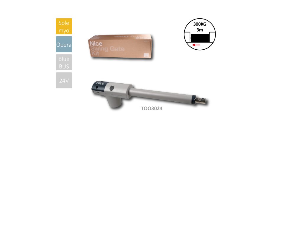 TOO - pohon pro křídlovou bránu do 3m/křídlo, 1x TOO3024 (24V, 340W, 2000N), teleskopické, bez koncových dorazůDoplňkové parametry