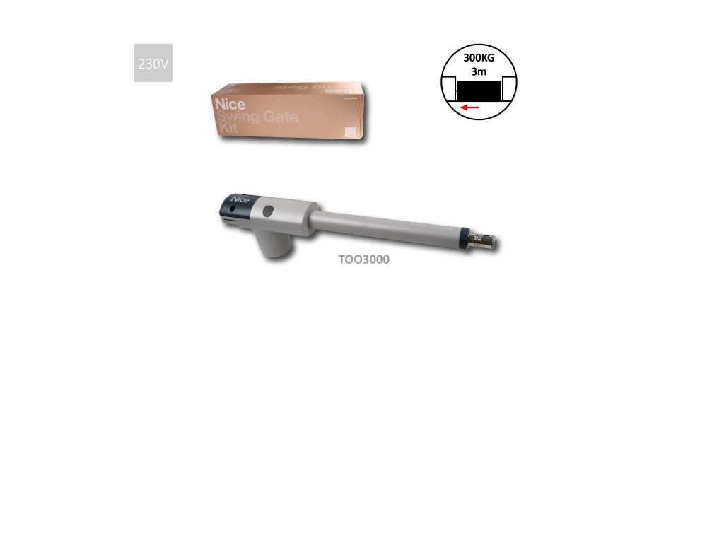 TOO - pohon pre krídlovú bránu do 3m/krídlo, 1x TOO3000 (230V, 340W, 2000N), teleskopický, bez koncových dorazovDoplňkové parametry