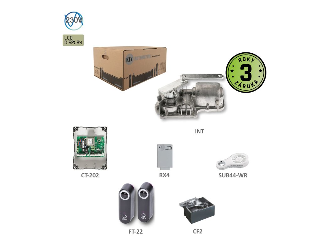 UNDERKIT podzemný pohon pre jednokrídlovú bránu do 3m / krídlo so základovou krabicou 1x CF, 1x INT, 1x CT-202, 1xRX4, 1 pár FT-22, 1x SUB-44WR