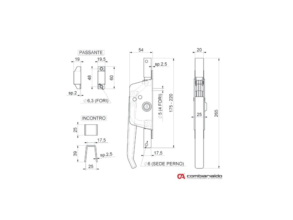 Uzavírací pákový systém L-265mm, ovládací tyč 14x14mm. Počet kusů v balení - 5.Doplňkové parametry