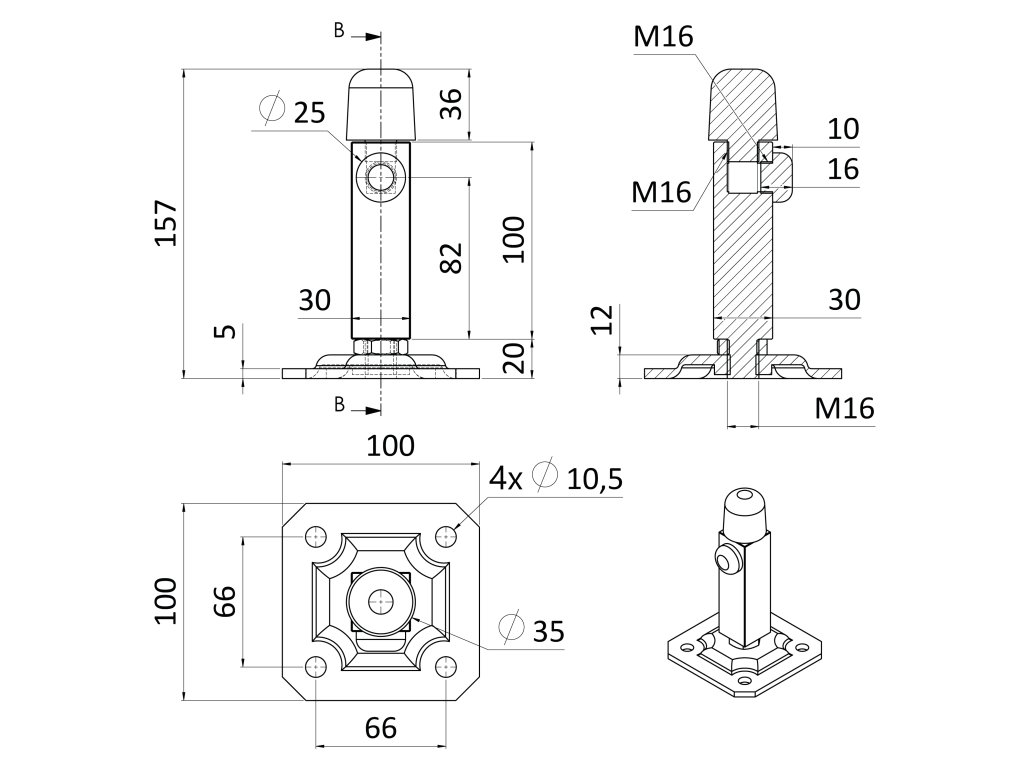 Nastavitelný doraz posuvných vrat, 100x100mm, pozinkovaný