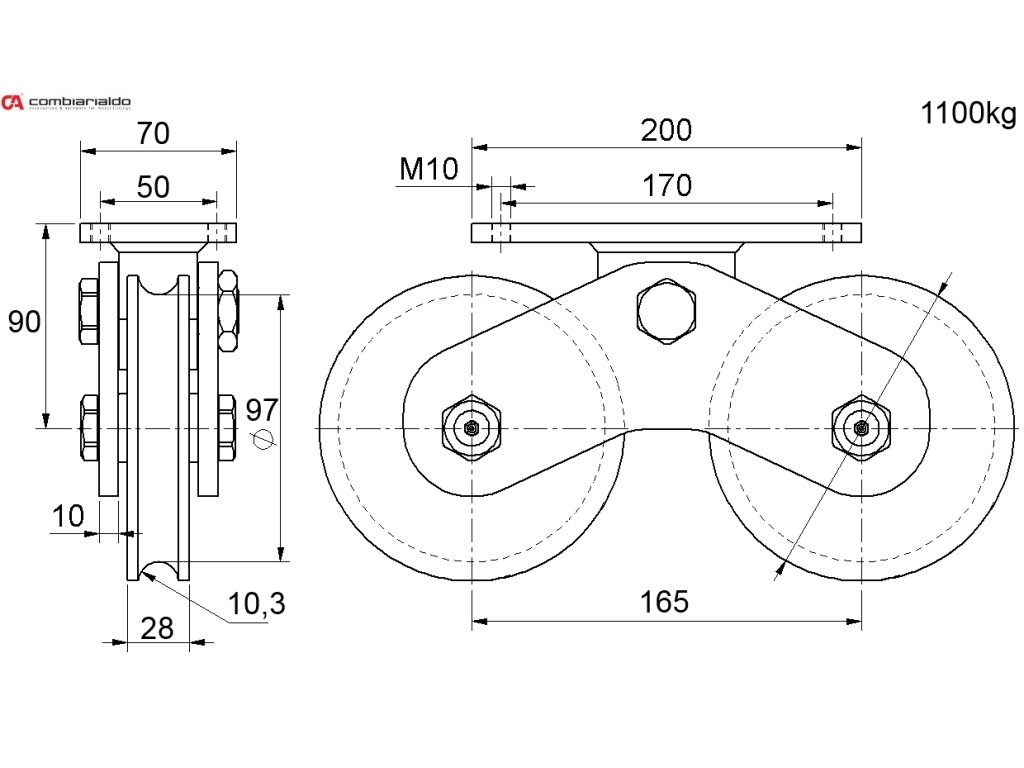 Koliesko od popredného talianského výrobcu Combi Arialdo. Povrchová úprava- pozink. Použitie pre posuvné brány. Väčšia zaťažiteľnosť s dvomi kolieskami na konzole.