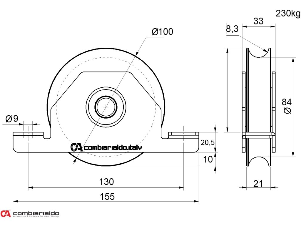 Koliesko od popredného talianského výrobcu Combi Arialdo. Povrchová úprava- pozink. Použitie pre posuvné brány.