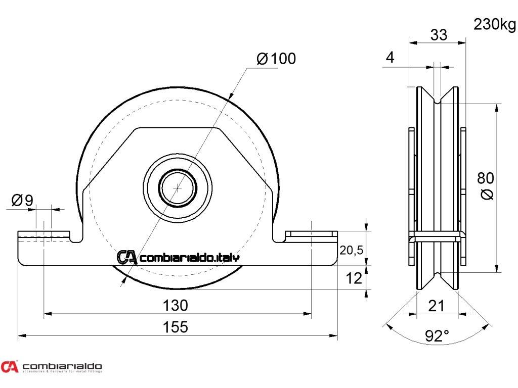 Koliesko od popredného talianského výrobcu Combi Arialdo. Povrchová úprava- pozink. Použitie pre posuvné brány.