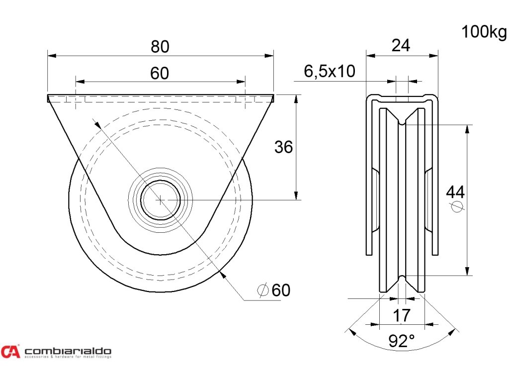 Koliesko od popredného talianského výrobcu Combi Arialdo. Povrchová úprava- pozink. Použitie pre posuvné brány.