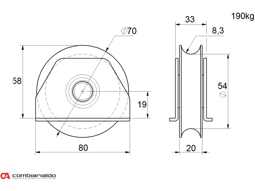 Kladka ø 70 mm na přivaření Combi Arialdo, C902/16 profil, nosnost 190 kg