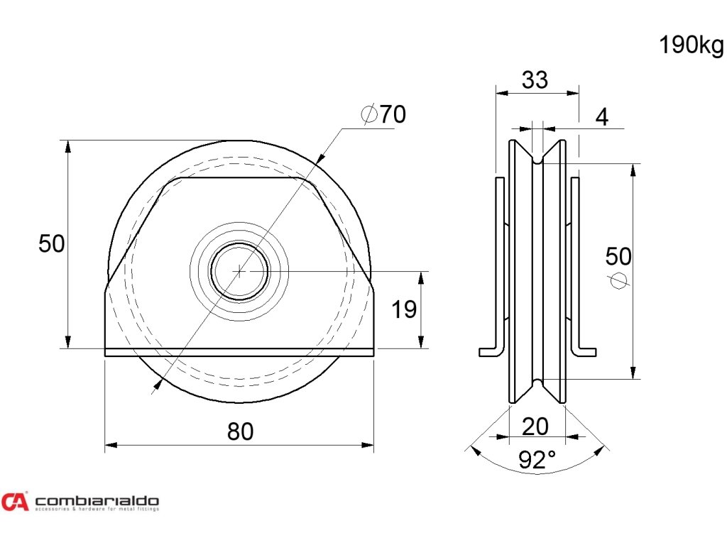Koliesko od popredného talianského výrobcu Combi Arialdo. Povrchová úprava- pozink. Použitie pre posuvné brány.