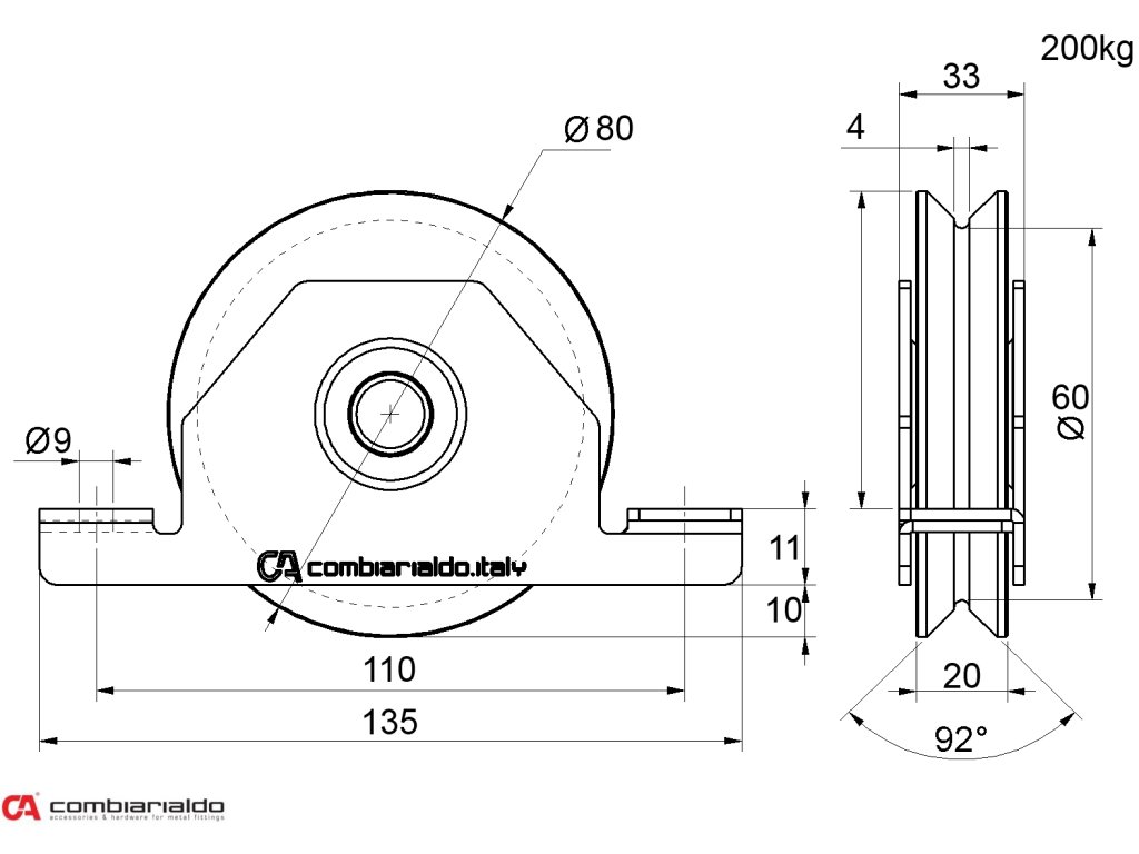 Koliesko od popredného talianského výrobcu Combi Arialdo. Povrchová úprava- pozink. Použitie pre posuvné brány.