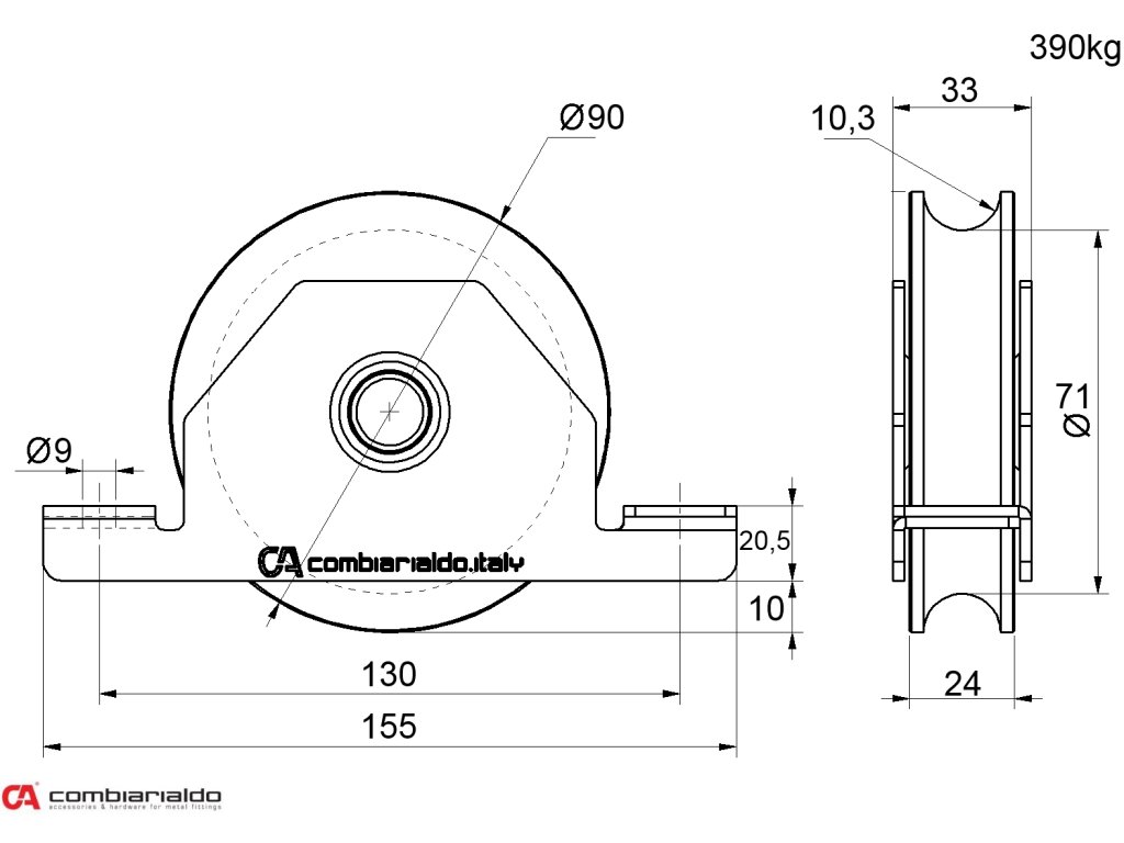 Kladka ø 90 mm pro zapuštění do jeklu dvouložisková Combi Arialdo, C902/20 profil, nosnost 390 kg