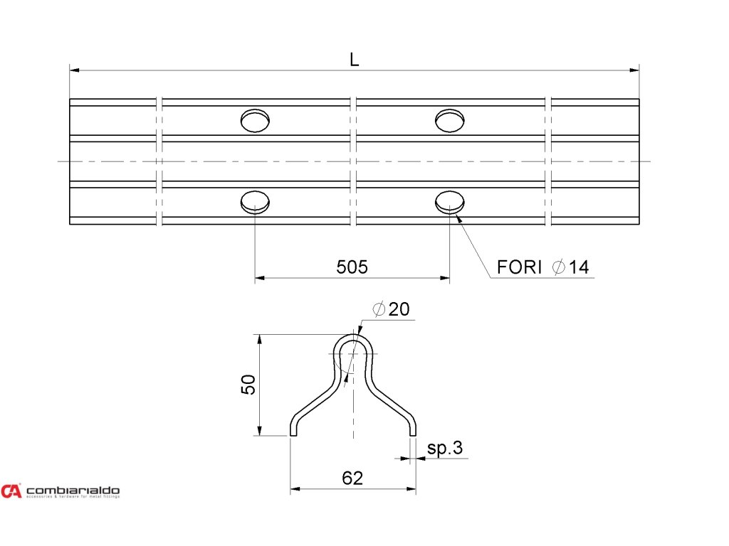 Vodiaci profil U ø 20mm Combi Arialdo pre posuvné brány, do betónu, dĺžka 3m, cena za kus