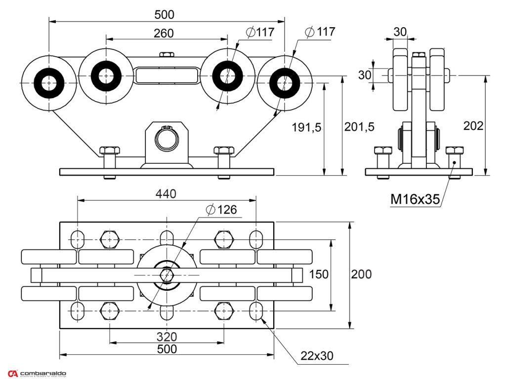 Samonosny systém vozíka od popredného talianského výrobcu Combi Arialdo. Povrchová úprava- pozink. Použitie pre posuvné brány. Kombinácia s kolajnicou C399G/Fe a C399G/Zn.Doplňkové parametry