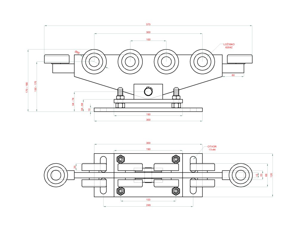 Vozík nastavitelný pro C-profil 80 x 80 x 5 mm, ocelová kolečka, žlutý zinek, pro bránu do 800 kg, otvor 6 - 10 m.Doplňkové parametry