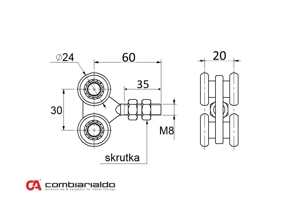 Vozík závěsný Combi Arialdo, 4 kladky nylonové Počet kusů v balení - 12.Doplňkové parametry