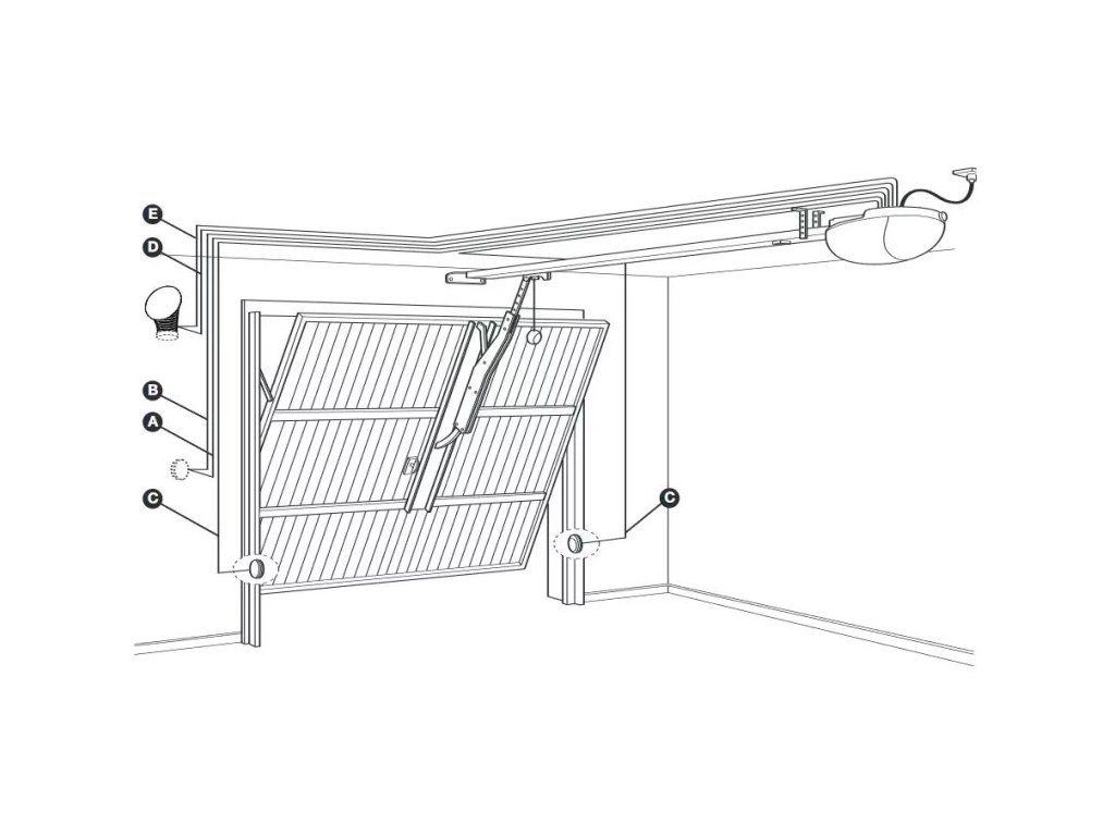 Výkyvné rameno SPA5 pro vyvážení výklopných vrat bez kolejničkového vedení, které přesahují obvod garáže.Doplňkové parametry