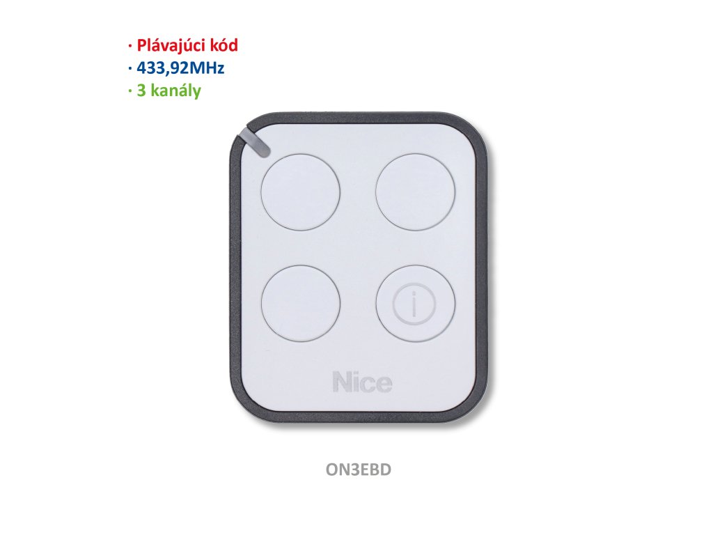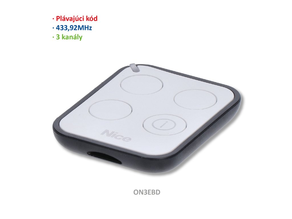Vysílač 3-kanálový, obousměrný, 433,92 MHz, řady ONE, bílo černý, plovoucí kód, 192-bitový O-kód, IP40 Programování obojsmerného ovladače ON3EBD: Společnost Nice již více než 25 let zkoumá potřeby zákazníků a poskytuje nejkvalitnější a spolehlivé řídicí systémy. Posledním příkladem je inteligentní obousměrný dálkový ovladač Era One BiDi, který poskytuje ovládání, pohodlí a bezpečnost doma díky možnosti kdykoliv zkontrolovat stav vstupních nebo garážových vrat. Era One BiDi pracuje s novými rádiovými moduly OXIBD, díky kterým může nejen posílat příkazy do ovladačů, ale také přijímat zpětnou vazbu. Například po stisknutí tlačítka na otevření nebo zavření brány na dálkovém ovladači se rozsvítí zelená LED dioda v rohu dálkového ovladače, což potvrzuje, že příkaz byl správně přijat automatizací brány. Po stisknutí tlačítka "i" se zase rozsvítí zelená LED, pokud je brána otevřená, červená, pokud je zavřená, nebo oranžová, pokud je brána částečně otevřená nebo se pohybuje. Nízká kapacita baterie nebo jakékoliv chyby v komunikaci nebo automatizaci jsou signalizovány vibrací celého dálkového ovladače. Použitá technologie NFC, známá z bezkontaktních platebních karet, umožňuje přístup k dalším funkcím dálkového ovládání. Po umístění smartphonu vedle dálkového ovladače Era One BiDi umožňuje aplikace Nice například čtení stavu nabití baterie v dálkovém ovladači. Nové řešení může také pracovat se sítí vytvořenou jinými zařízeními Nice v okolí. Díky tomu je možné bránu kontrolovat a ovládat i z větší vzdálenosti, například z druhé strany pozemku. Výhodou nového řešení je i šifrování komunikace zaručující nejvyšší úroveň bezpečnosti a zvýšenou odolnost proti rádiovému rušení. Moderní obousměrný rádiový protokol je také téměř třicetkrát rychlejší než v předchozích verzích ovladačů. Nový systém je kompatibilní se všemi motory Nice pro vjezdové brány a garážová vrata pomocí modulárního vysílače OXI. Chcete-li připojit a využívat tyto nové funkce dálkového ovládání, jednoduše otevřete ovládací panel řídící jednotky a vyměňte modul vysílače OXI za OXIBD. ON3EBD černobílá 3-kanálová obousměrná vysílačka 433,92 Mhz (s oboustrannou komunikací s přijímači OXIBD a zpětně kompatibilní s jednosměrnými typy přijímačů OXI) s ukazatelem stavu brány. Možnost dostat «odpověď» po odeslání povelu. Možnost zjistit stav vaší brány - signalizace pomocí barvy diody: červená - zavřená oranžová - částečně otevřená zelená - otevřená Možnost vymazání jednoho vysílače. Chytré ovládání vysílání, které kontroluje okolí před odesláním signálu. Možnost přidávat vysílačky pomocí funkce «enabling code» (přiložení ovladače k ovladači) Možnost přidávat vysílačky dálkově, pokud se nacházíte blízko přijímače. Nevysílá signál nepřetržitě, vysílání přerušuje v okamžiku, kdy dostane odpověď. Technologie NFC pro čtení doplňujících informací pro uživatele.