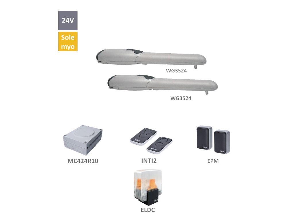 WINGO sada pro dvoukřídlou bránu do 3,5m/křídlo, 2x WG3524 (24V, 85W, 1500N), 2x INTI2, 1 pár EPM, 1x ELDC, 1x MC424LR30 + vestavěný přijímač Cca od začátku roku 2026 bude v balení řídicí jednotka MC424LR30 s nižší spotřebou energie v klidovém režimu. Pokud ji budete chtít zálohovat záložním zdrojem N PS124, pak je potřeba dokoupit kabel N CABLA11 (v budoucnosti to bude vyřešeno novým záložním zdrojem N PSS124 kde budou dva propojovací kabely - pro starší i novější typy jednotek). Vlastnosti: Spolehlivost a tichý chod: Patentované vnitřní uspořádání součástek a méně pohyblivých částí zaručuje spolehlivost a tichý chod pohonu. Jednoduchost montáže: Elektrické zapojení je možné realizovat shora po namontování pohonu. Pohodlné odblokování: Pohon je možné jednoduše odblokovat pomocí personalizovaného klíče Nice nebo standardního zámku. Předmontované mechanické dorazy: Zajišťují přesné zastavení brány v otevřené a zavřené poloze. Řídicí jednotka Moonclever MC424LR30: Jednoduché programování pomocí tří tlačítek. Vetavěný přijímač pro dálkové ovládání. Výhody: Spolehlivost a tichý chod Jednoduchost montáže a údržby Pohodlné odblokování Vysoká úroveň bezpečnosti Rozšířené možnosti programování Možnost použití nouzové baterieDoplňkové parametry