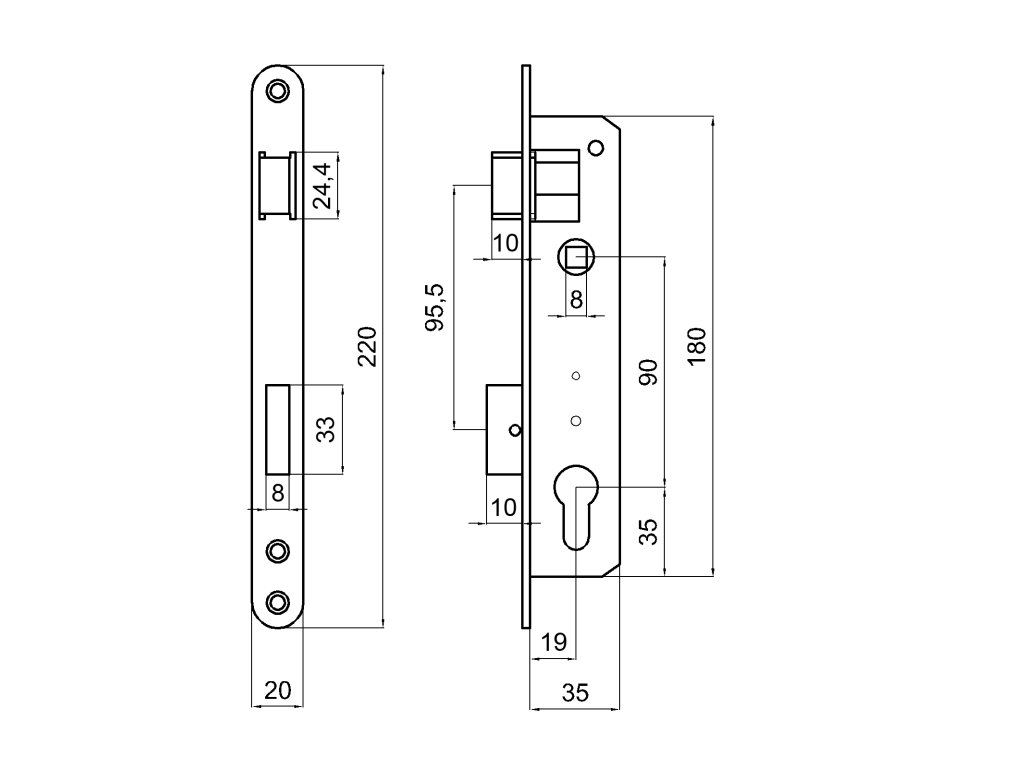 Zámek vložkový, hloubka 35 mm, rozteč 90 mm, černý