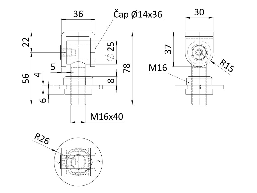 Závěs nastavitelný, závit M16, rozebíratelná podložka, částečně pozinkovanýDoplňkové parametry