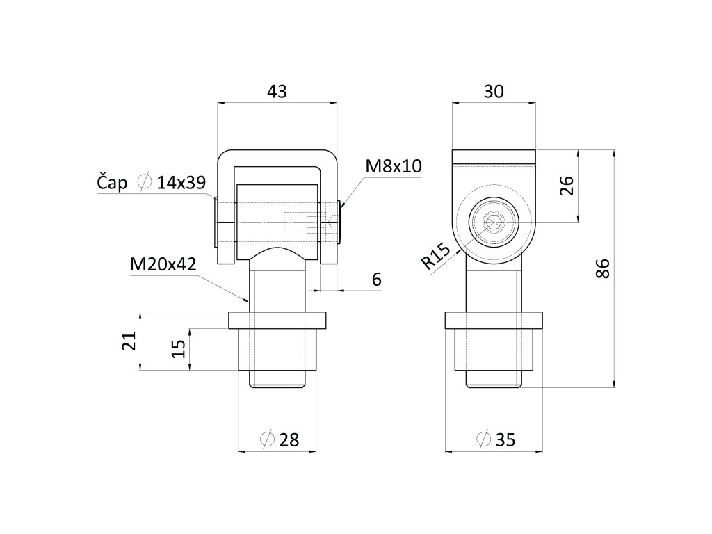 Závěs pozinkovaný s navařovací maticí M20Doplňkové parametry