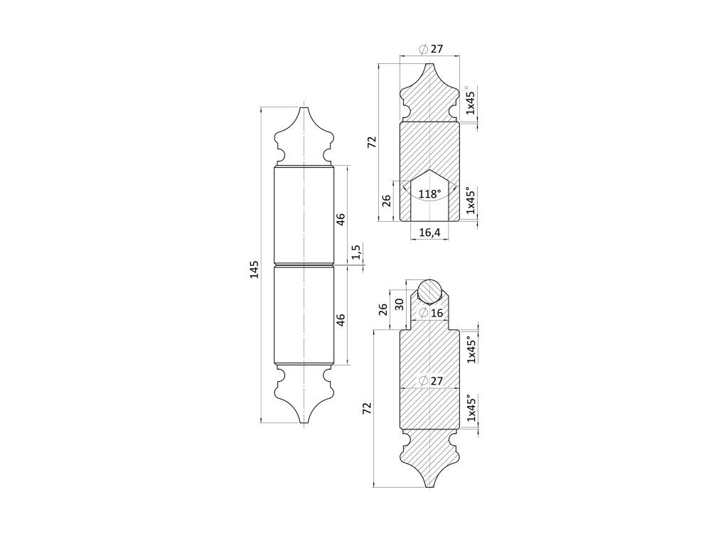 Závěs s kuličkou 145 x 27 mm, ozdobnýDoplňkové parametry